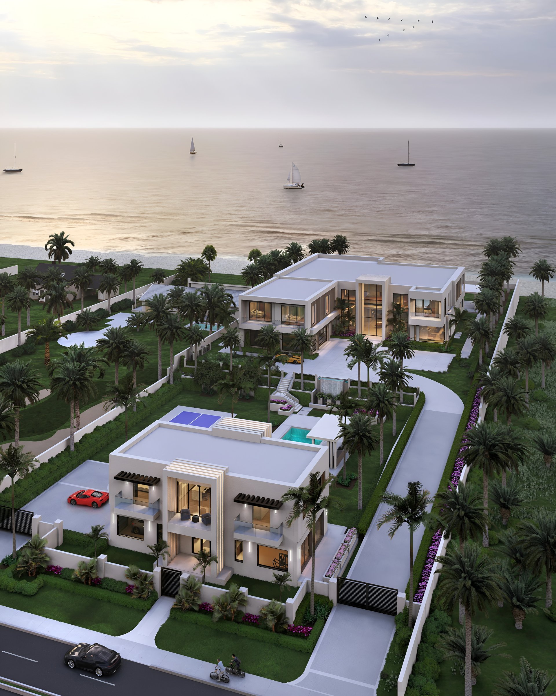 Joe Farrell of Farrell Building Companies sold the property at 1140 S Ocean Boulevard in Manalapan, Florida, for $55.5 million. He had planned a compound, as seen in these renderings, but sold it just as the project got underway.