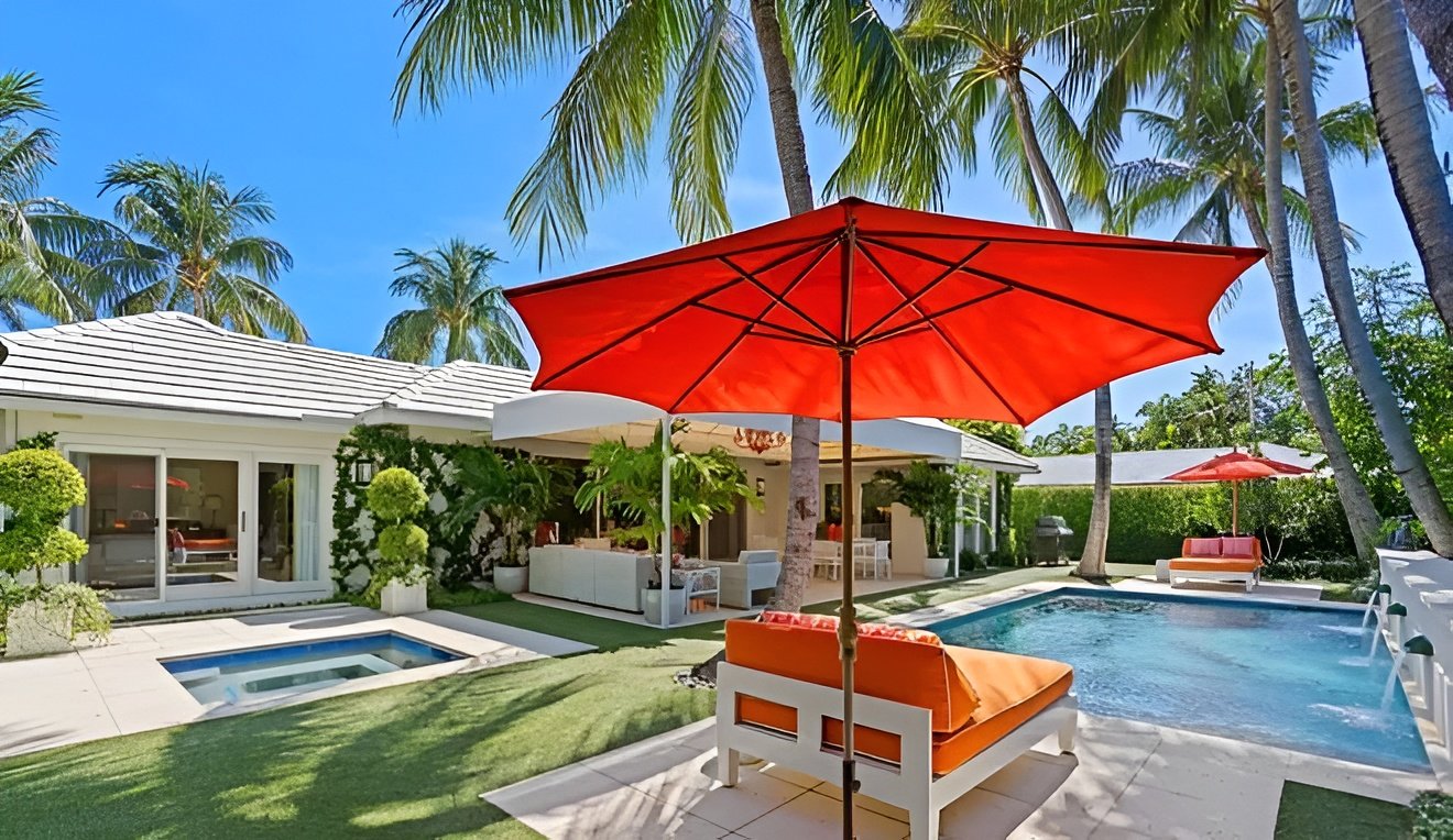 Recently sold for a recorded $9.2 million after being listed for sale in early October, a Palm Beach house at 209 Bermuda Lane has a loggia overlooking the pool area.