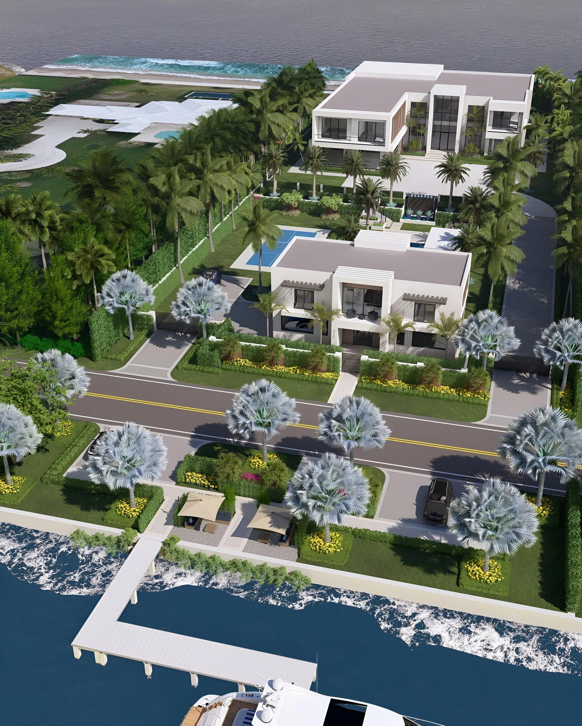 The property runs from the Intracoastal to the Atlantic. When both lots are combined, the end result will be a compound on 3.6 acres, and 340 feet on the ocean.